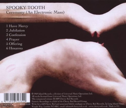 The reason for this was much more commercial than artistic. The great success of La Messe Pour Le Temps Present and Les Jerks Electroniques with Michel Colombier gave my editor at Philips the idea that I should work together with an English group to make a thematic album, based on the idea of the Mass. When this started, I didn't know these people at all, and I accepted for a number of reasons which would not interest me now. . . .Spooky Tooth traveled to France to record in a cathedral the material that Wright, who was raised Catholic, had written. Wright supported the project because he thought it was going to be a working collaboration with Henry, a classically trained avant-garde composer. But it turned out to be nothing of the sort. Spooky Tooth quickly recorded Ceremony live, and that was the last that the band had anything to do with it. Henry slapped a track of his musique concrète and some low-tech electronics over the top and Blackwell rushed it to market. Wright was so pissed off he quit the band.